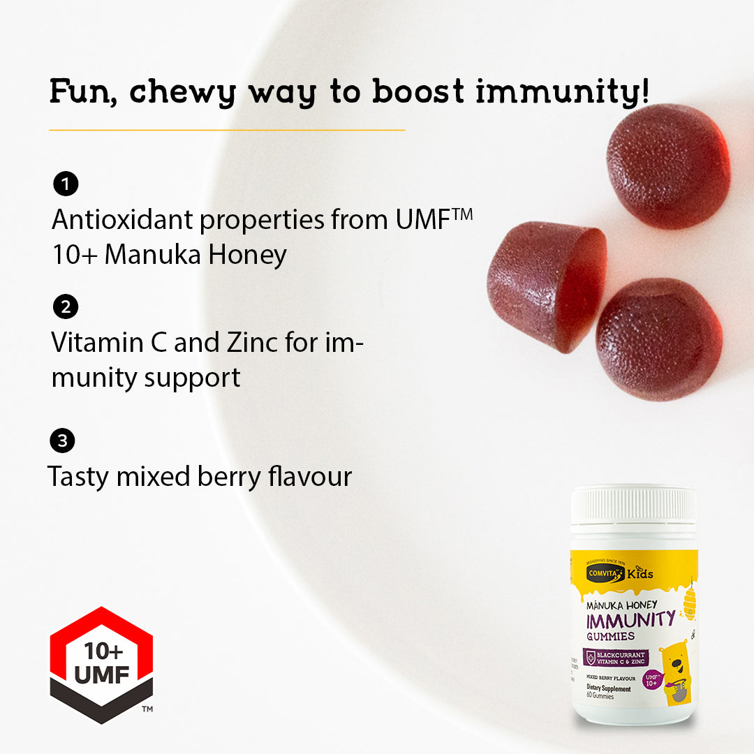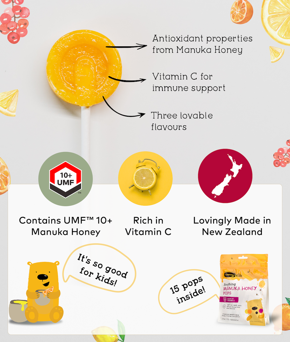 Powered with Certified UMF™10+ Manuka Honey: To work alongside Vitamin C to get children back to their playful, super selves again.